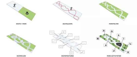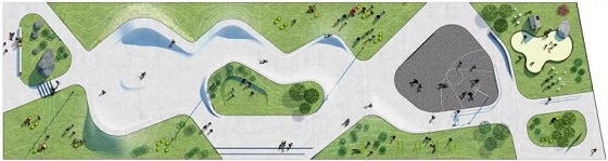 極限滑板主題公園的設(shè)計(jì)要讓人們?cè)谶@座全新的滑板公園中享受滑板運(yùn)動(dòng)的樂趣。公園建立與周圍環(huán)境的聯(lián)系的同時(shí)又保有良好的功能性。