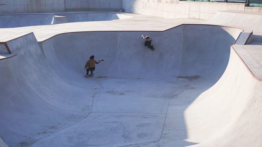 遠(yuǎn)處的碗池深度均勻,但是邊緣向內(nèi)延伸形成了一個Spine(梁)以及一個圓臺,想在這個場地內(nèi)發(fā)揮可沒有那么容易。