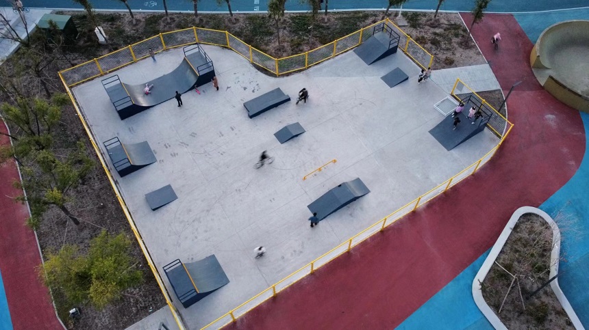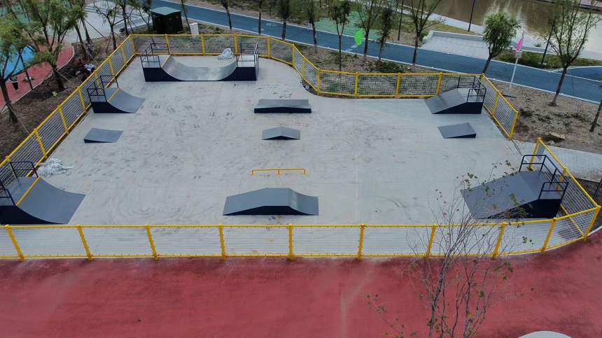 廣闊的滑板場(chǎng)地設(shè)計(jì)別具匠心,800多平面的街式場(chǎng)地區(qū)域、U型槽、小弧坡、小斜坡、雙斜坡、大小出發(fā)臺(tái)、大小拋出臺(tái)、跳箱、盒子、跳桿、坡跳臺(tái)各種都有。彎曲的曲線道、陡峭的坡道和各種令人眼花繚亂的障礙設(shè)施,處處挑戰(zhàn)滑手們的技藝和勇氣。無(wú)論是新手還是經(jīng)驗(yàn)豐富的滑板高手,都能在這里找到適合自己的挑戰(zhàn),一次又一次突破自我,感受成功的喜悅。